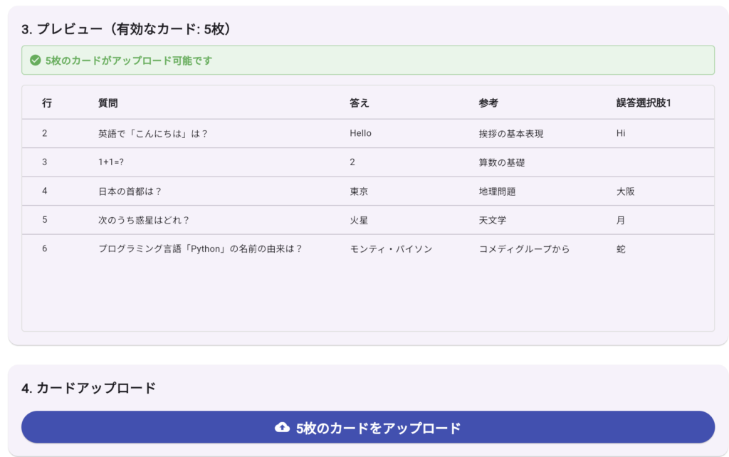 CSV、貼り付けでカードを一括作成