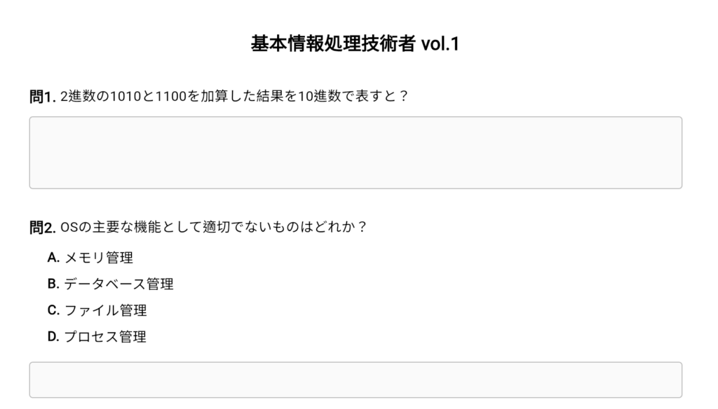 問題用紙をPDFで出力。設問ごとの配点表記にも対応