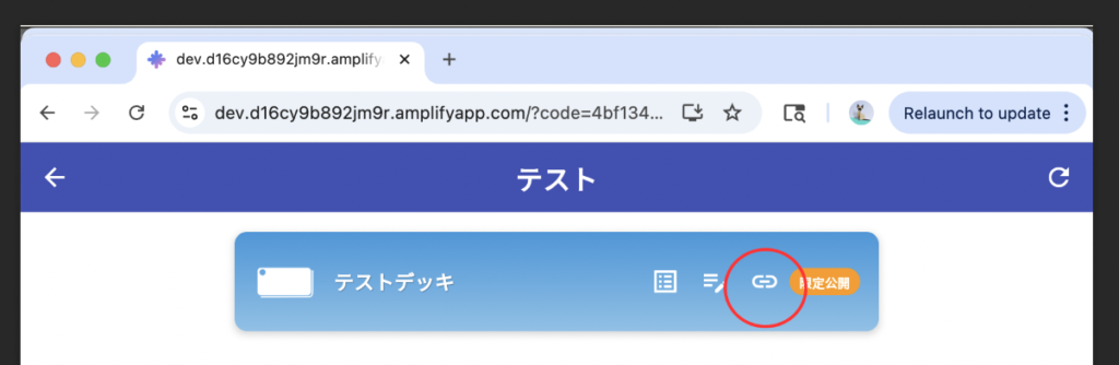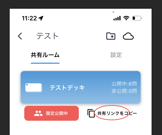 共有デッキ画面が開いたら、リンクアイコンをタップしてください。