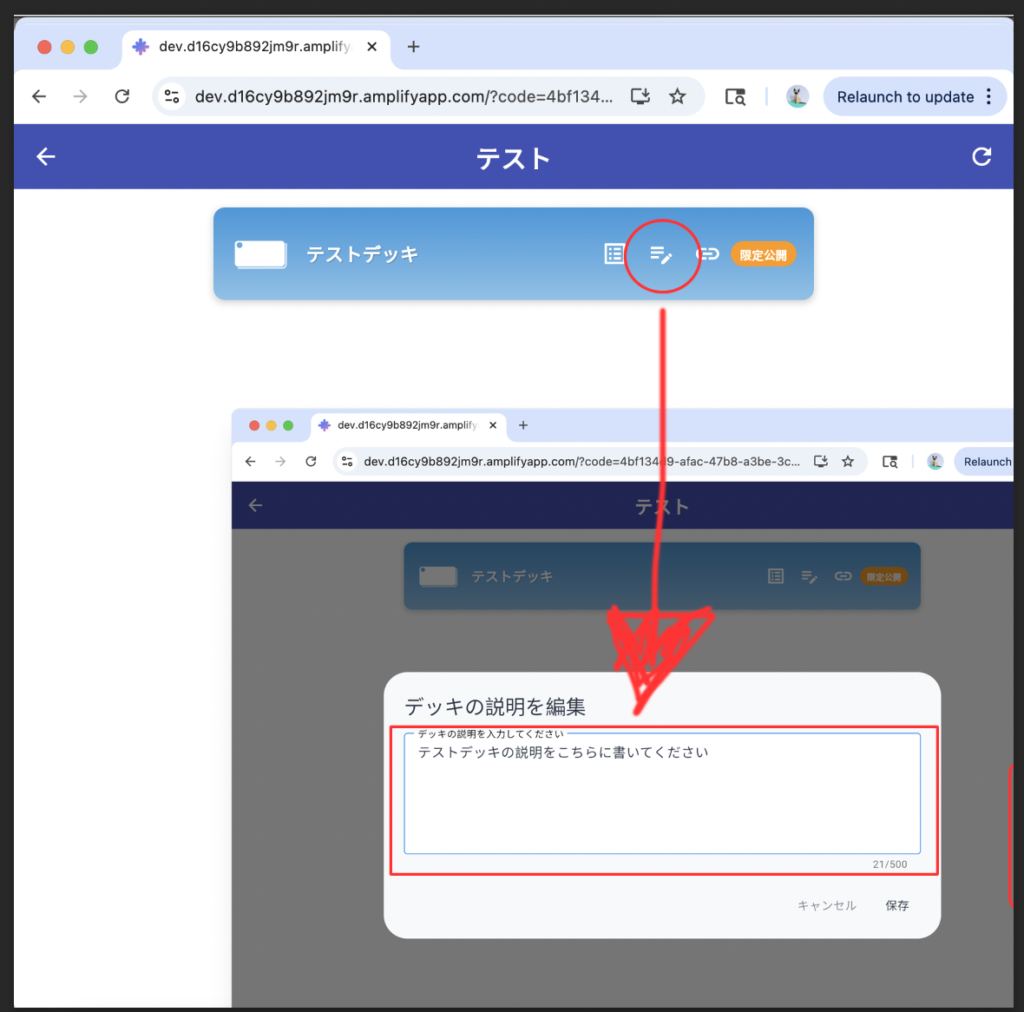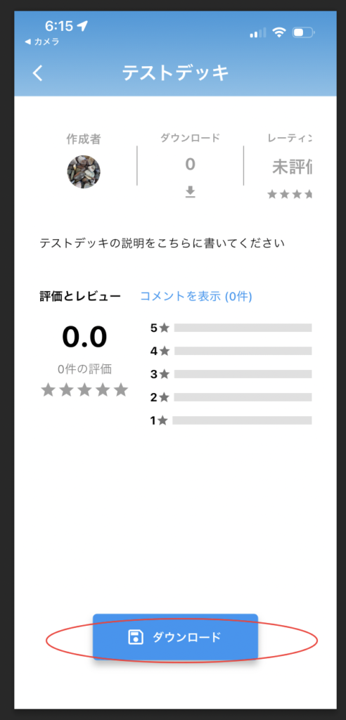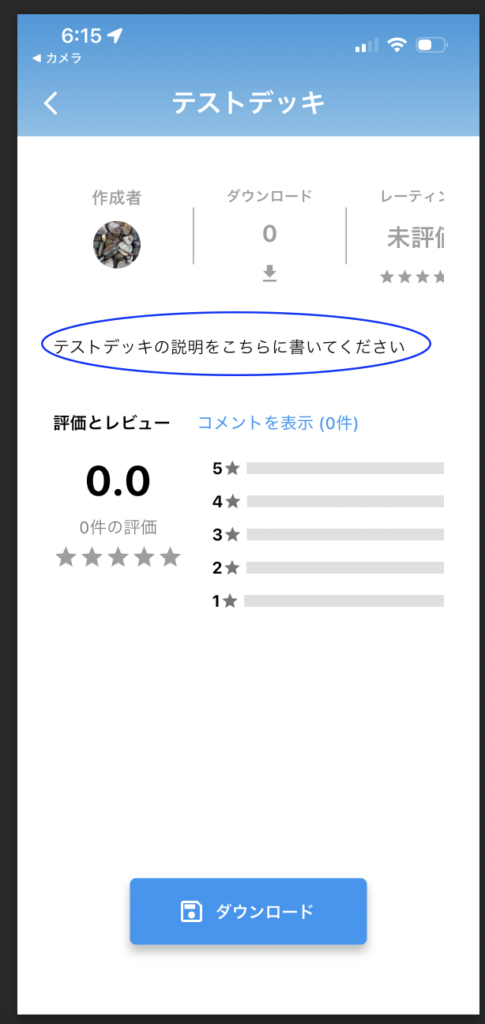 このアイコンをタップして、デッキの説明を記載することができます。記載した文言はデッキダウンロード画面に反映されます