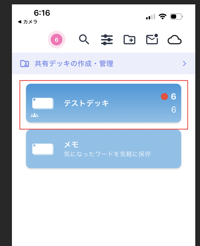 1. アプリへログインして、共有デッキ画面を表示