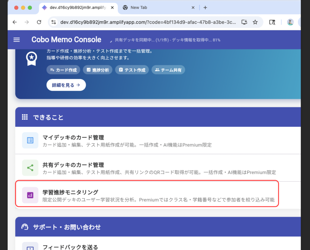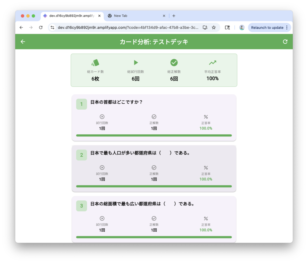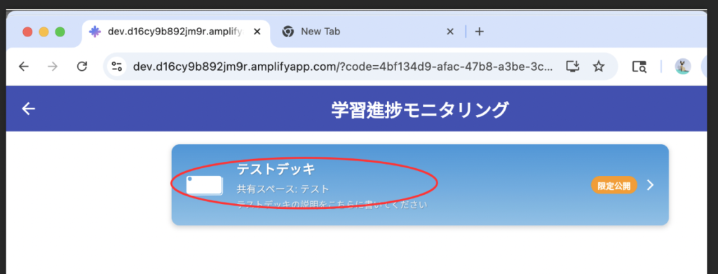限定公開したデッキは、Webコンソールから学習状況の確認を行うことができます。