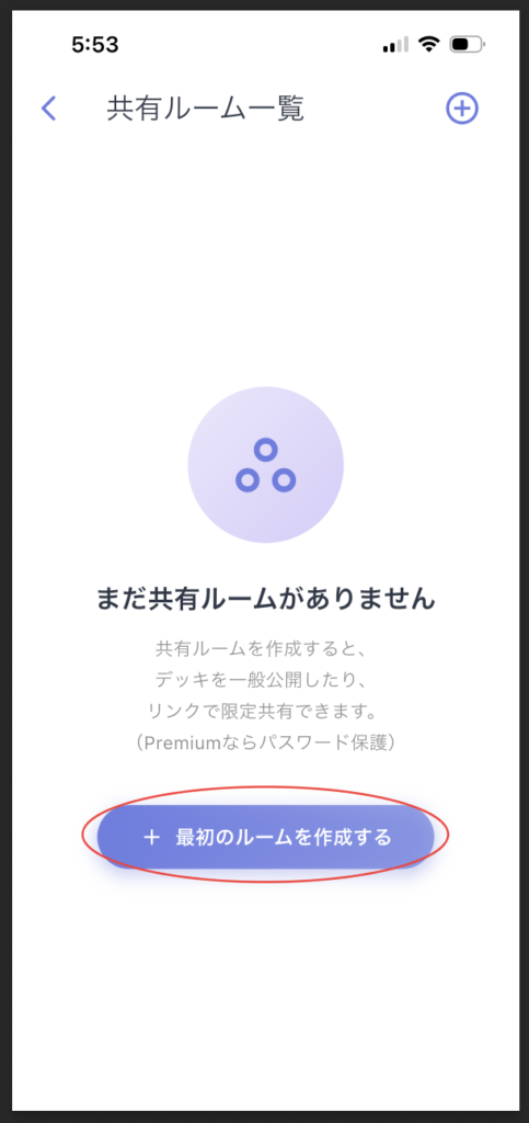共有ルームを作成します。「最初のルームを作成する」をタップして